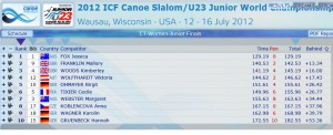 All results can be found on the 2012 Wausau Whitewater website http://www.2012wausau.com/